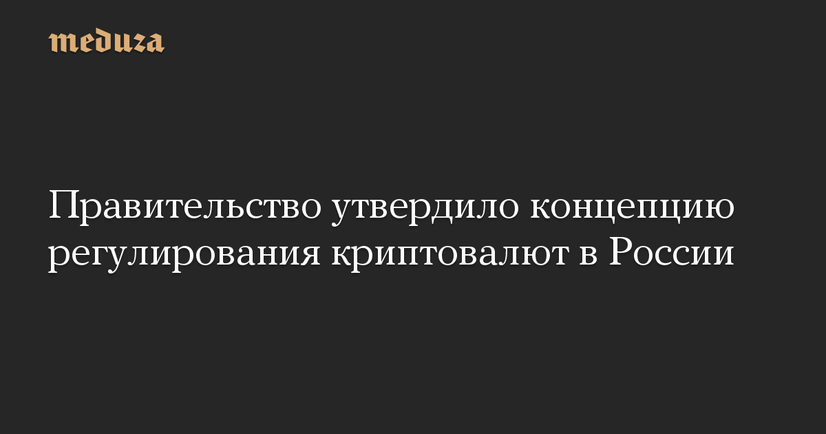 Правительство утвердило концепцию законодательного регулирования оборота цифровых валют в России с «жесткими обязательствами для всех участников профессионального рынка и акцентом на защиту прав рядовых инвесторов».