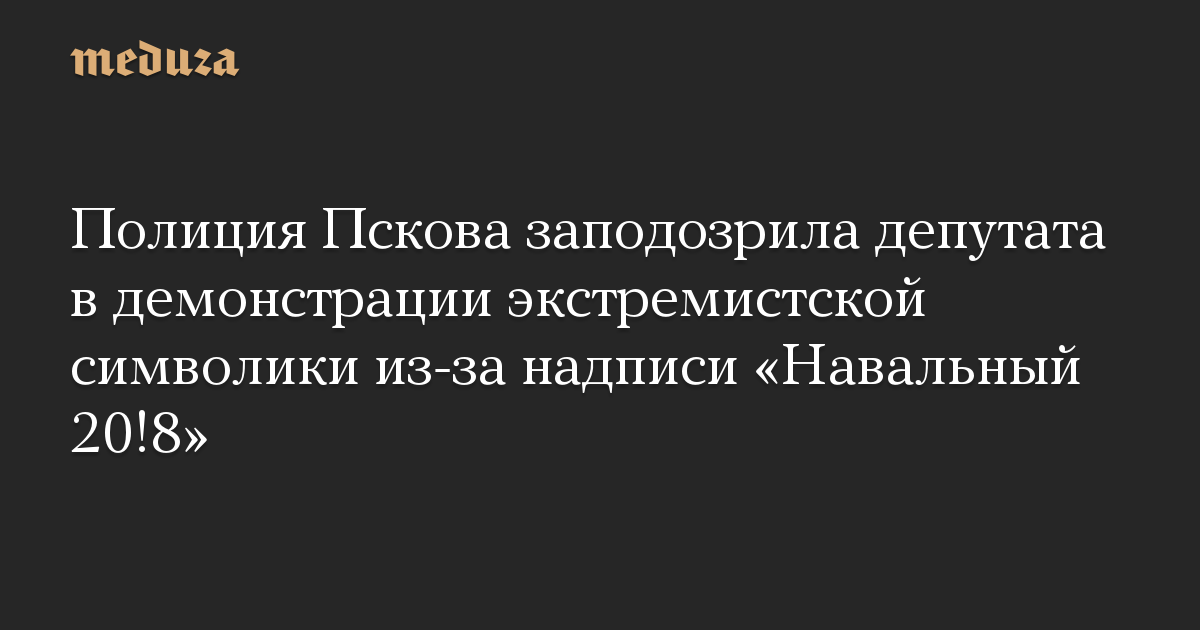 Полиция Пскова заподозрила депутата в демонстрации экстремистской символики из-за надписи «Навальный 20!8»