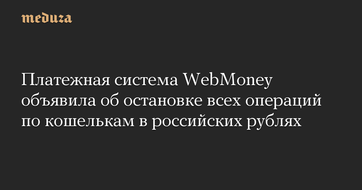 Платежная система WebMoney объявила об остановке всех операций по кошелькам в российских рублях