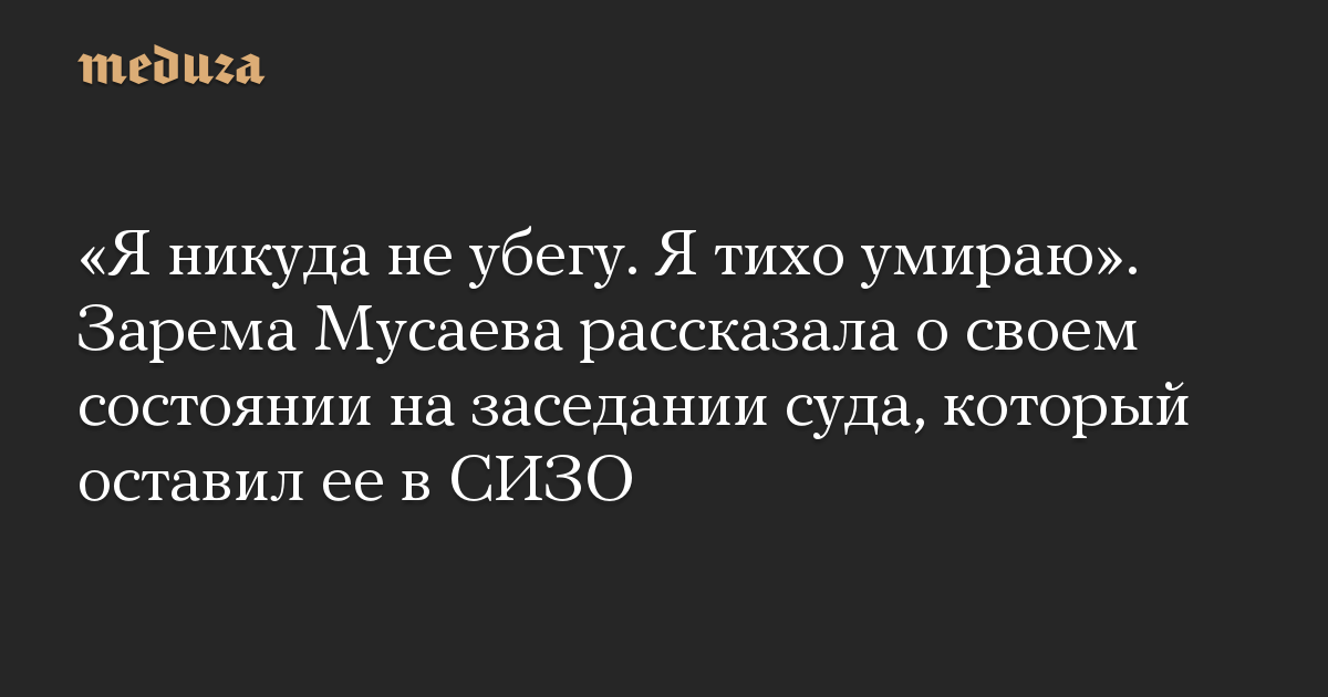 После этого, отмечает "Дождь", выступает прокурор, а потом судья предоставляет Мусаевой последнее слово. Она произносит всего несколько фраз: «Если можете дать мне домашний арест, я никуда не убегу. Состояние мое очень плохое, я тихо умираю».