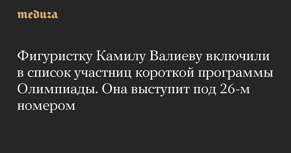 Фигуристку Камилу Валиеву включили в список участниц короткой программы Олимпиады. Она выступит под 26-м номером