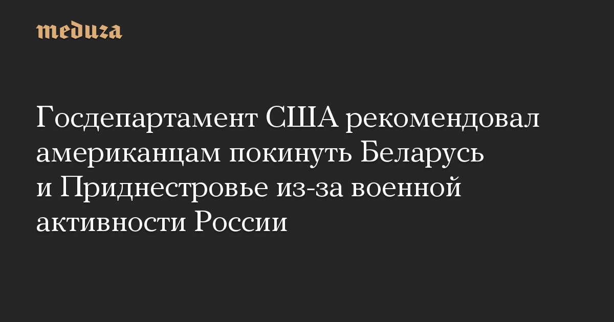 Государственный департамент США рекомендовал своим гражданам немедленно покинуть Беларусь и непризнанное Приднестровье коммерческим или частным транспортом, говорится в сообщениях ведомства.