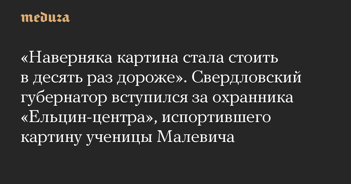 «Наверняка картина стала стоить в десять раз дороже». Свердловский губернатор вступился за охранника «Ельцин-центра», испортившего картину ученицы Малевича