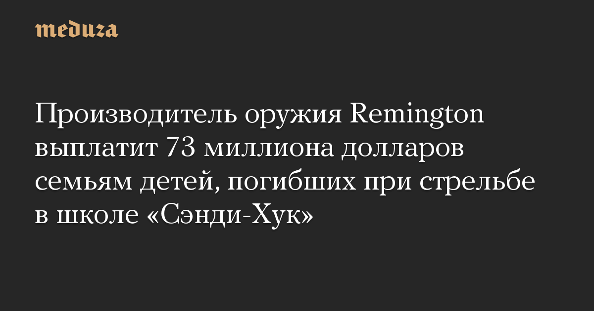 Компания по производству оружия Remington Arms выплатит 73 миллиона долларов семьям некоторых людей, погибших в 2012 году во время массового убийства в начальной школе «Сэнди-Хук» в городе Ньютаун, штат Коннектикут.