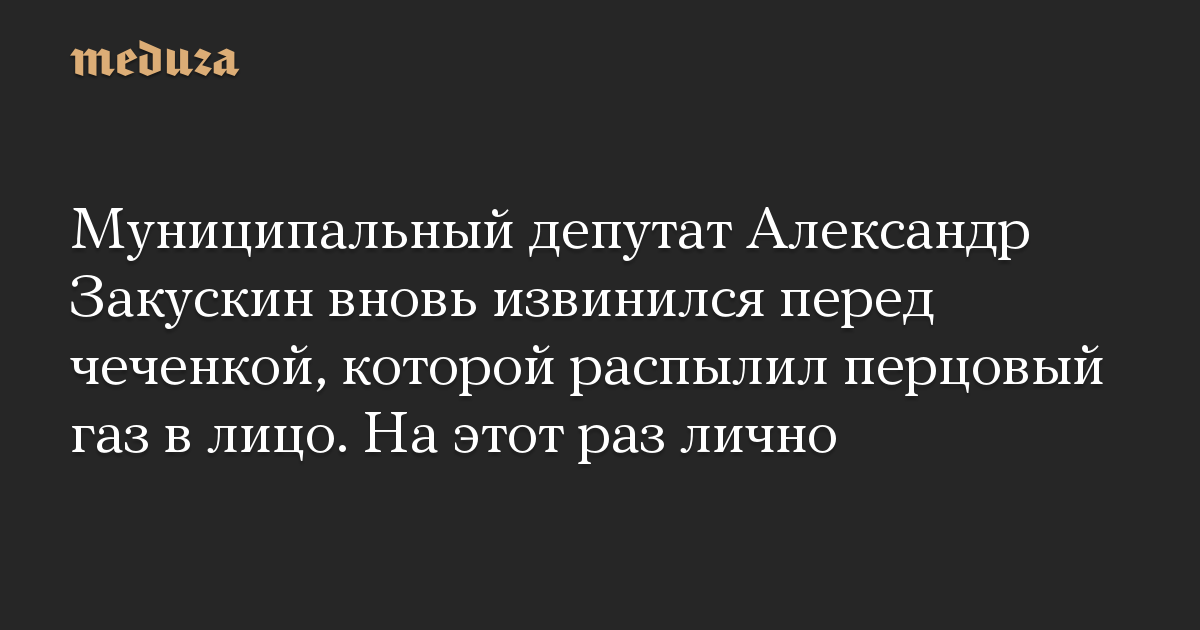 Муниципальный депутат Александр Закускин вновь извинился перед чеченкой, которой распылил перцовый газ в лицо. На этот раз лично