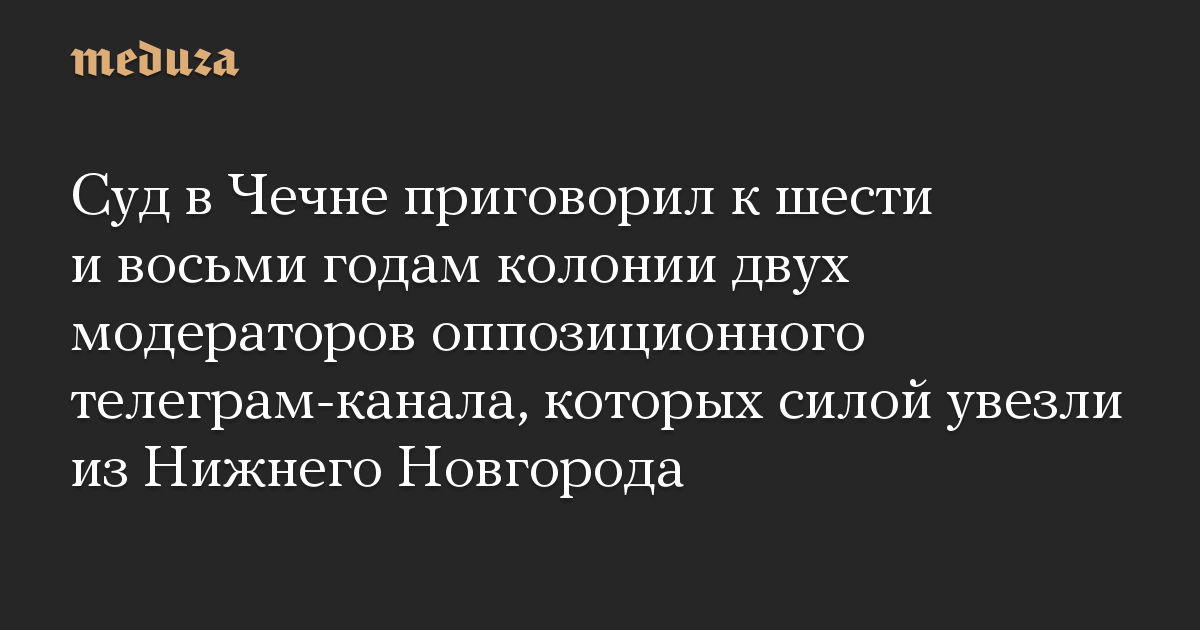 Суд в Чечне приговорил к шести и восьми годам колонии двух модераторов оппозиционного телеграм-канала, которых силой увезли из Нижнего Новгорода