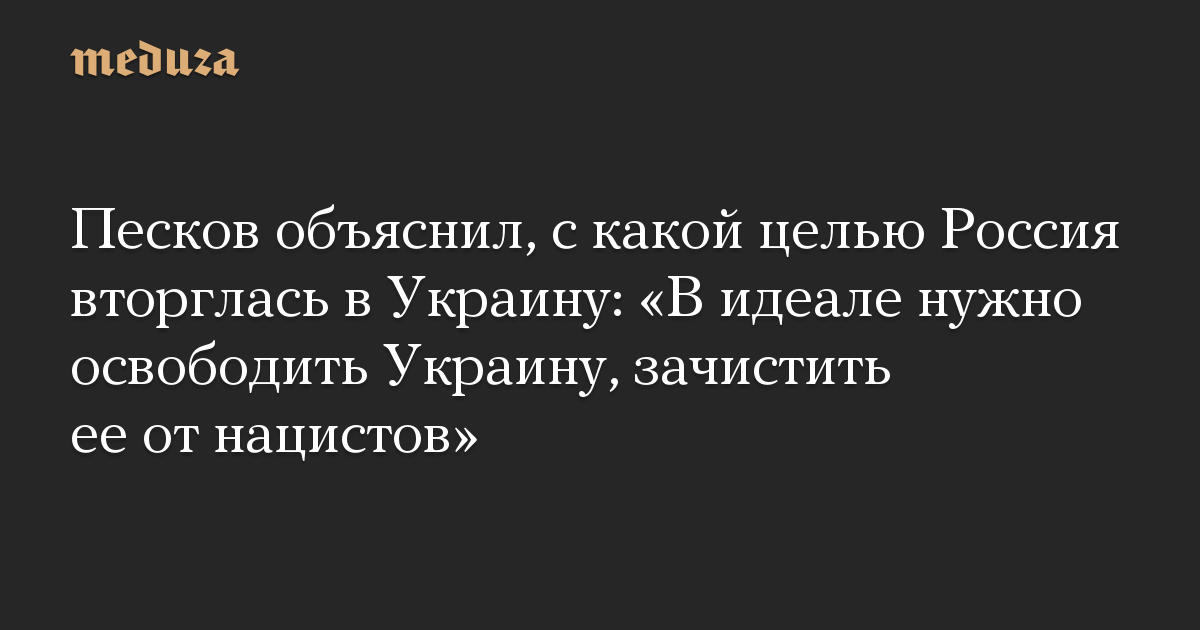 Песков объяснил, с какой целью Россия вторглась в Украину: «В идеале нужно освободить Украину, зачистить ее от нацистов»