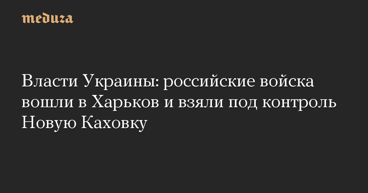 Власти Украины: российские войска вошли в Харьков и взяли под контроль Новую Каховку