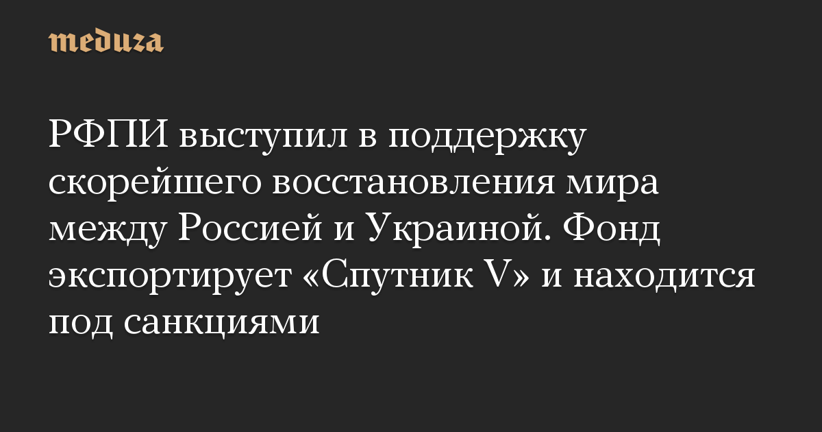 РФПИ выступил в поддержку скорейшего восстановления мира между Россией и Украиной. Фонд экспортирует «Спутник V» и находится под санкциями