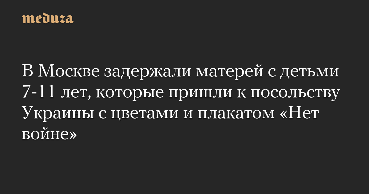 В Москве задержали матерей с детьми 7-11 лет, которые пришли к посольству Украины с цветами и плакатом «Нет войне»
