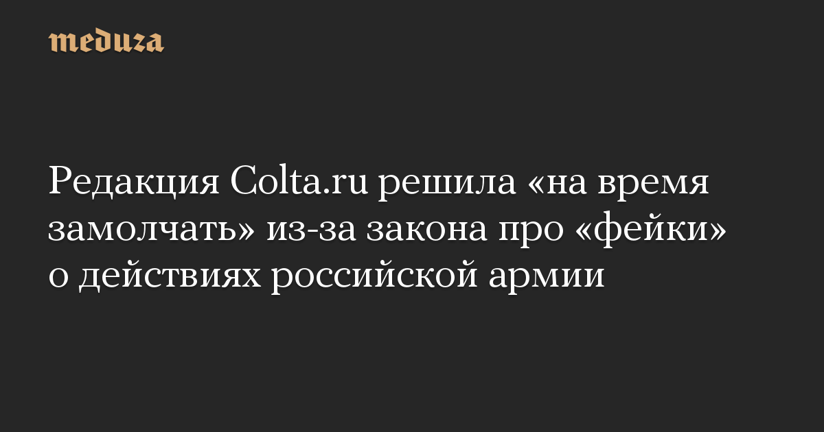 Редакция Colta.ru решила «на время замолчать» из-за закона про «фейки» о действиях российской армии