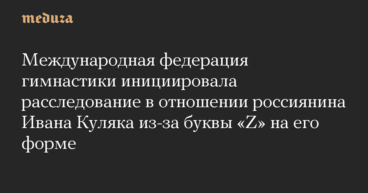 Международная федерация гимнастики инициировала расследование в отношении россиянина Ивана Куляка из-за буквы «Z» на его форме