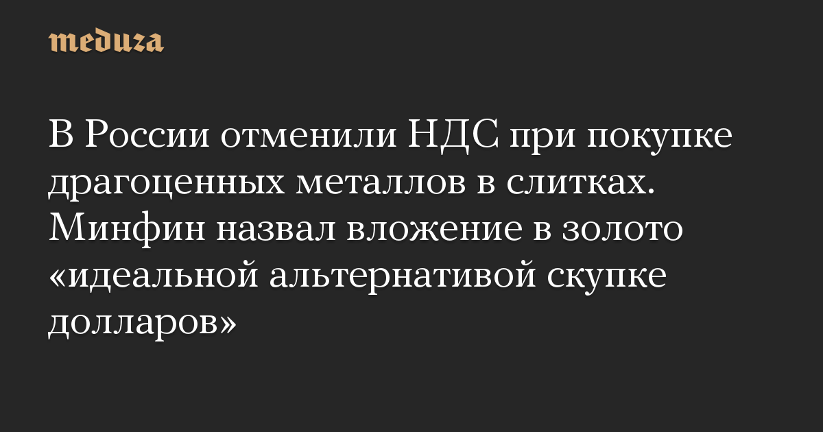 В России отменили НДС при покупке драгоценных металлов в слитках. Минфин назвал вложение в золото «идеальной альтернативой скупке долларов»