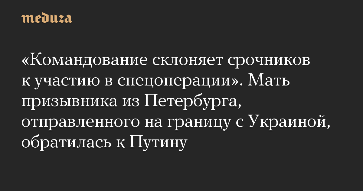 «Командование склоняет срочников к участию в спецоперации». Мать призывника из Петербурга, отправленного на границу с Украиной, обратилась к Путину