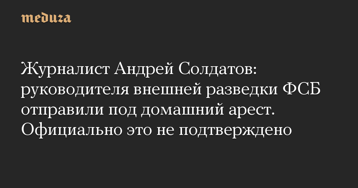 Журналист Андрей Солдатов: руководителя внешней разведки ФСБ отправили под домашний арест. Официально это не подтверждено
