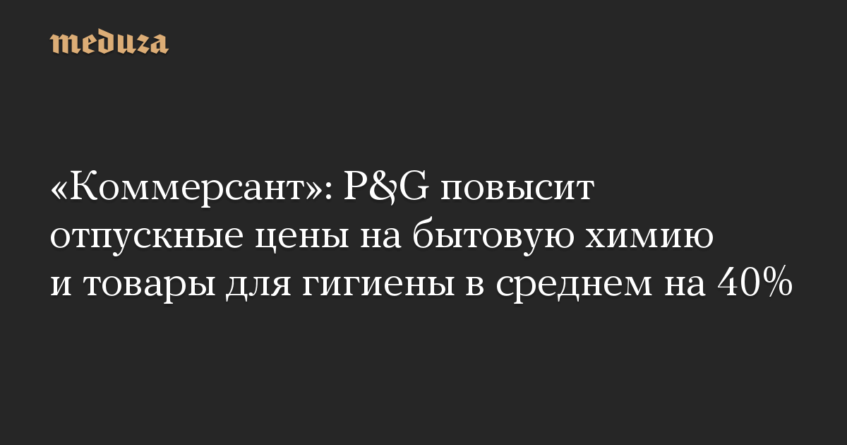 «Коммерсант»: P&G повысит отпускные цены на бытовую химию и товары для гигиены в среднем на 40%
