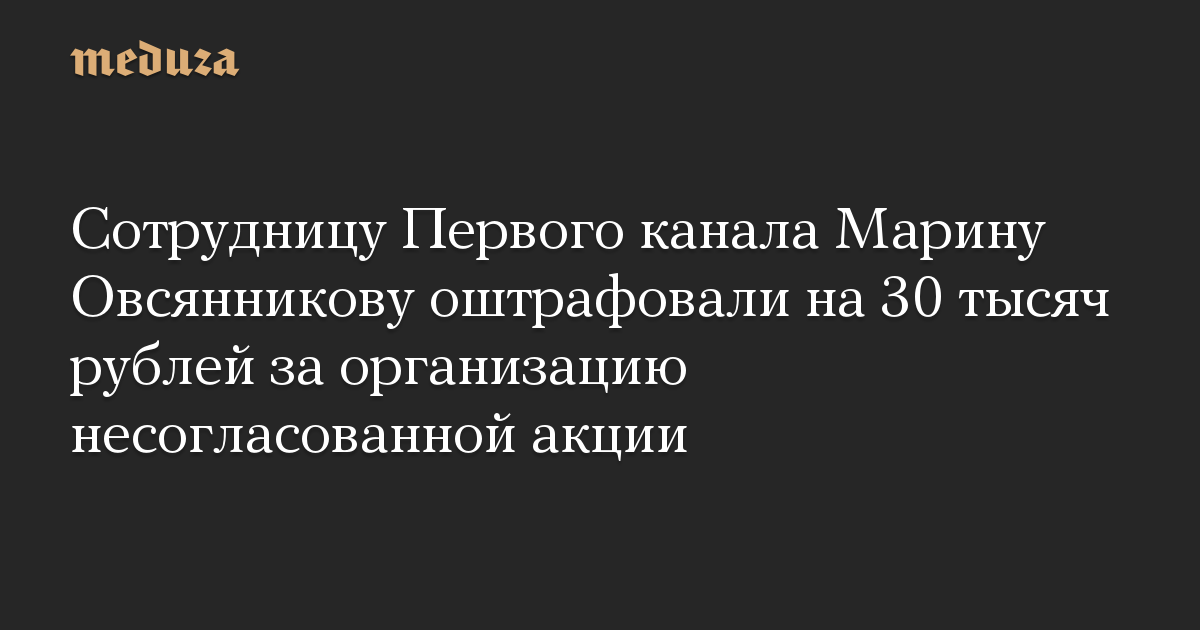 Сотрудницу Первого канала Марину Овсянникову оштрафовали на 30 тысяч рублей за организацию несогласованной акции