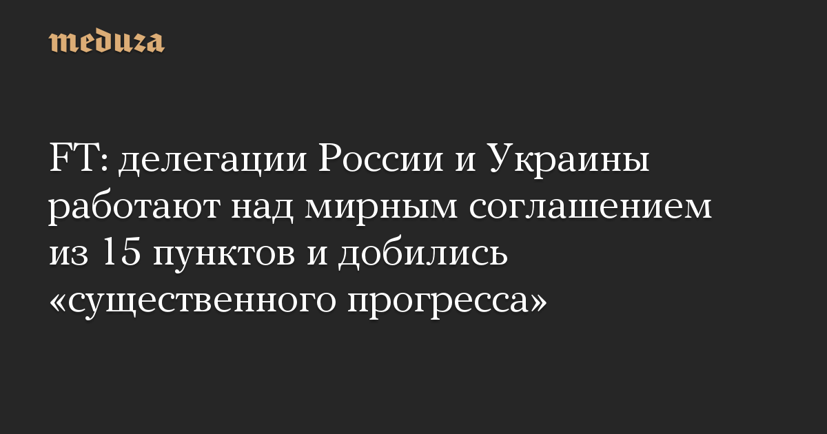 FT: делегации России и Украины работают над мирным соглашением из 15 пунктов и добились «существенного прогресса»
