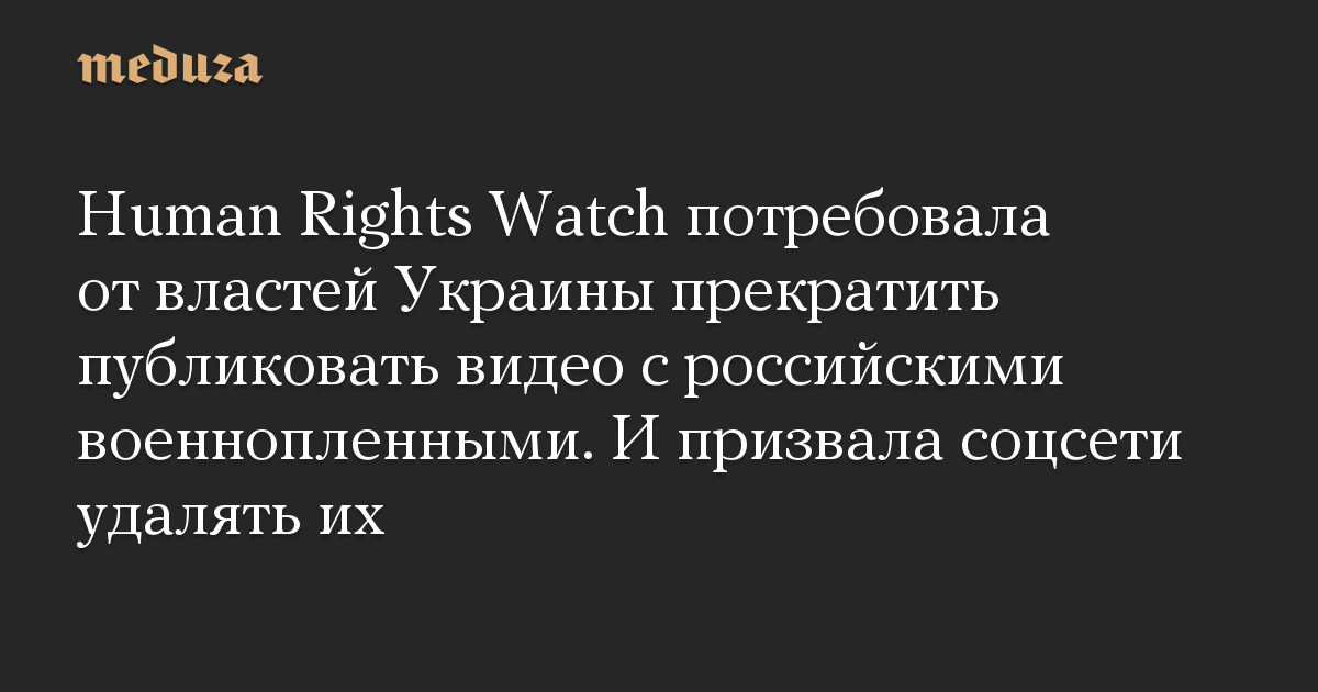 Human Rights Watch потребовала от властей Украины прекратить публиковать видео с российскими военнопленными. И призвала соцсети удалять их