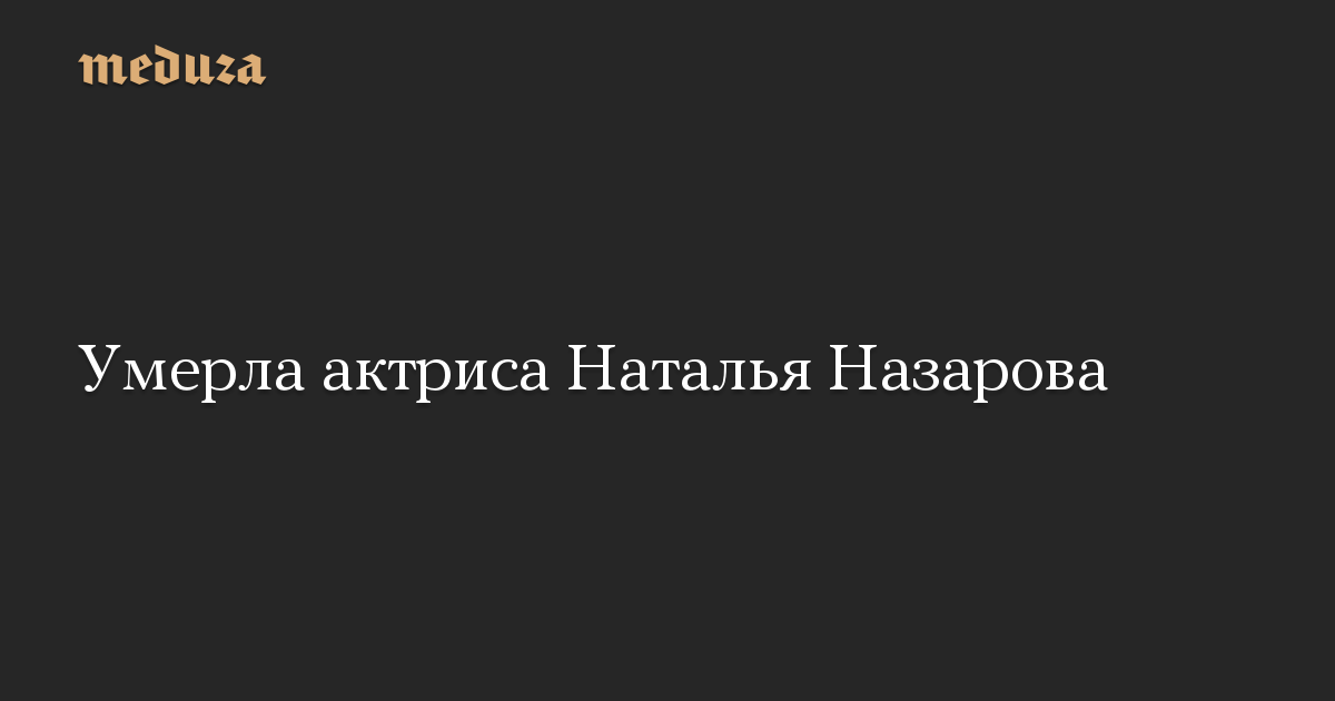 Заслуженная артистка России, актриса театра и кино Наталья Назарова умерла в возрасте 72 лет, сообщается на сайте Союза кинематографистов РФ.