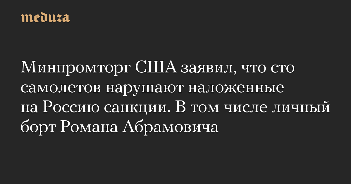 Минпромторг США заявил, что сто самолетов нарушают наложенные на Россию санкции. В том числе личный борт Романа Абрамовича