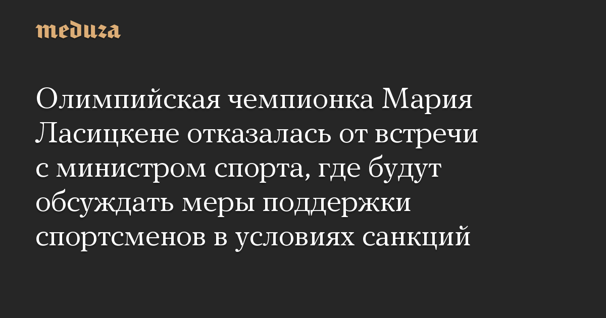 Олимпийская чемпионка по прыжкам в высоту Мария Ласицкене отказалась от встречи с министром спорта России Олегом Матыциным. Об этом РИА Новости рассказал муж спортсменки Владас Ласицкас.