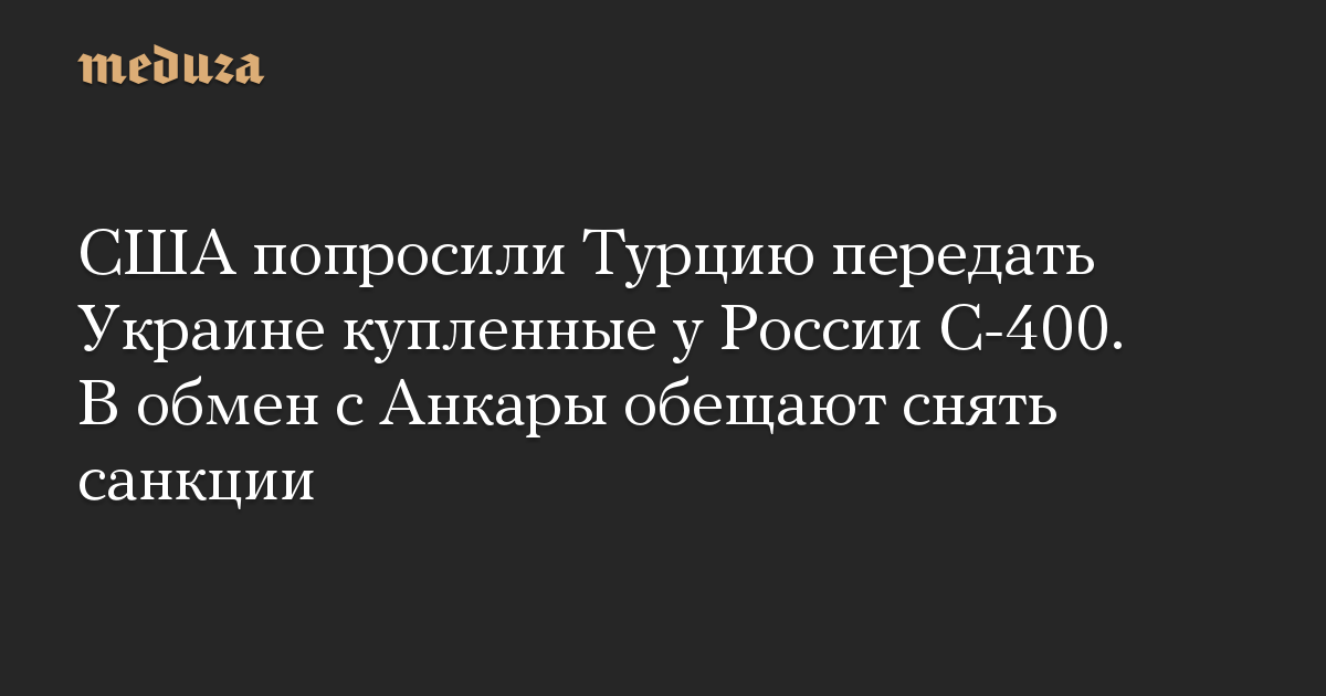 США попросили Турцию передать Украине купленные у России С-400. В обмен с Анкары обещают снять санкции