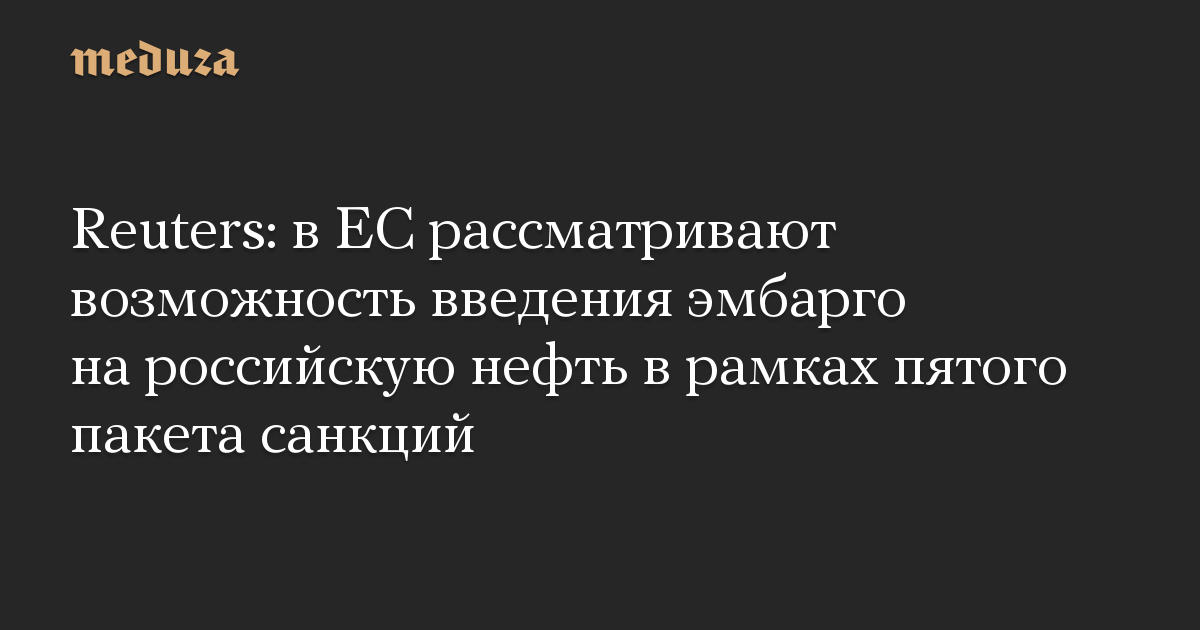 Reuters: в ЕС рассматривают возможность введения эмбарго на российскую нефть в рамках пятого пакета санкций