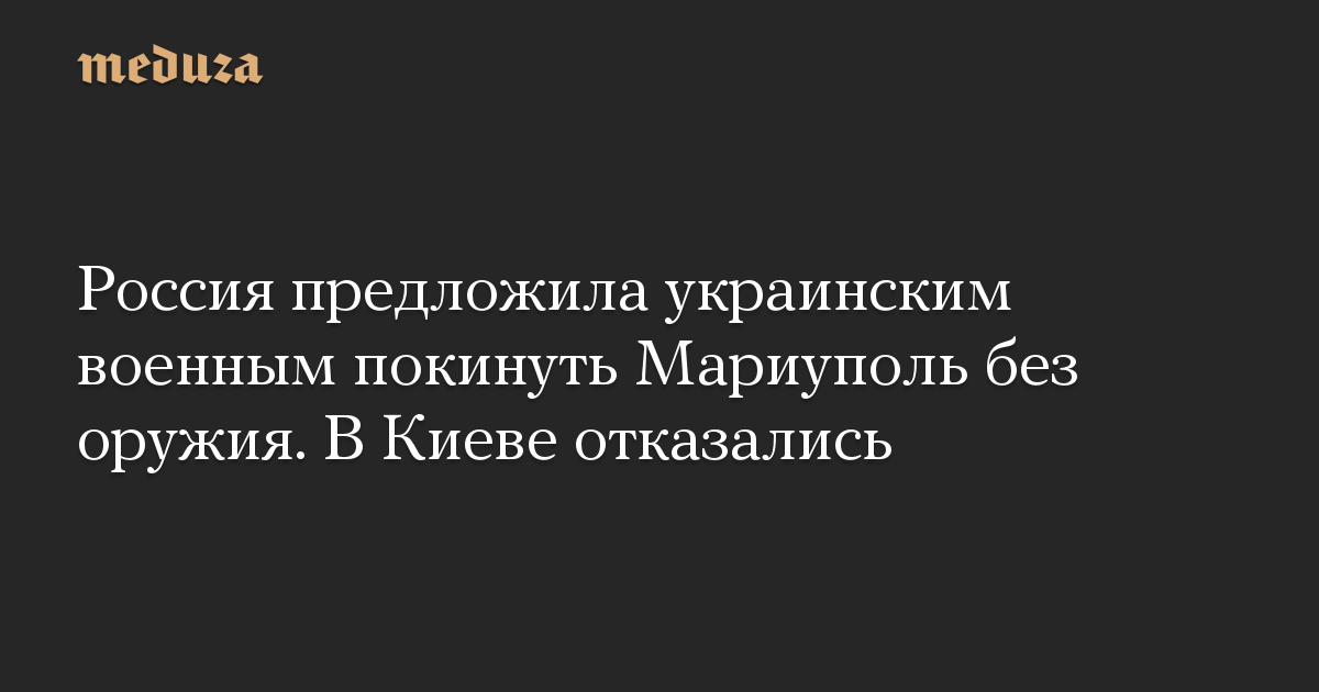 Россия предложила украинским военным покинуть Мариуполь без оружия. В Киеве отказались