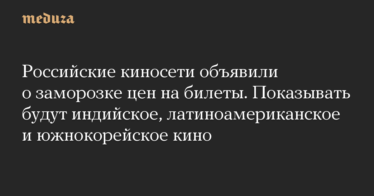 Российские киносети объявили о заморозке цен на билеты. Показывать будут индийское, латиноамериканское и южнокорейское кино