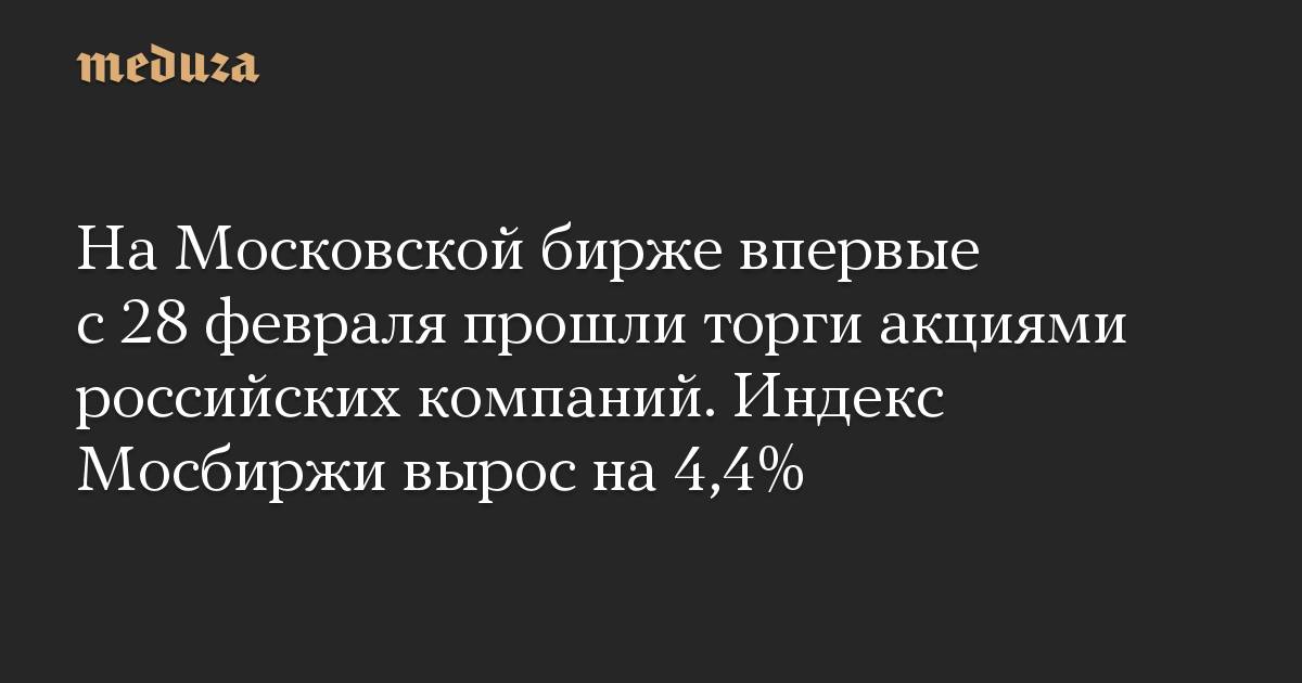 На Московской бирже открылись торги акциями некоторых российских компаний после перерыва, который продолжался около месяца и стал самым длительным в истории российского фондового рынка, пишет The Bell.