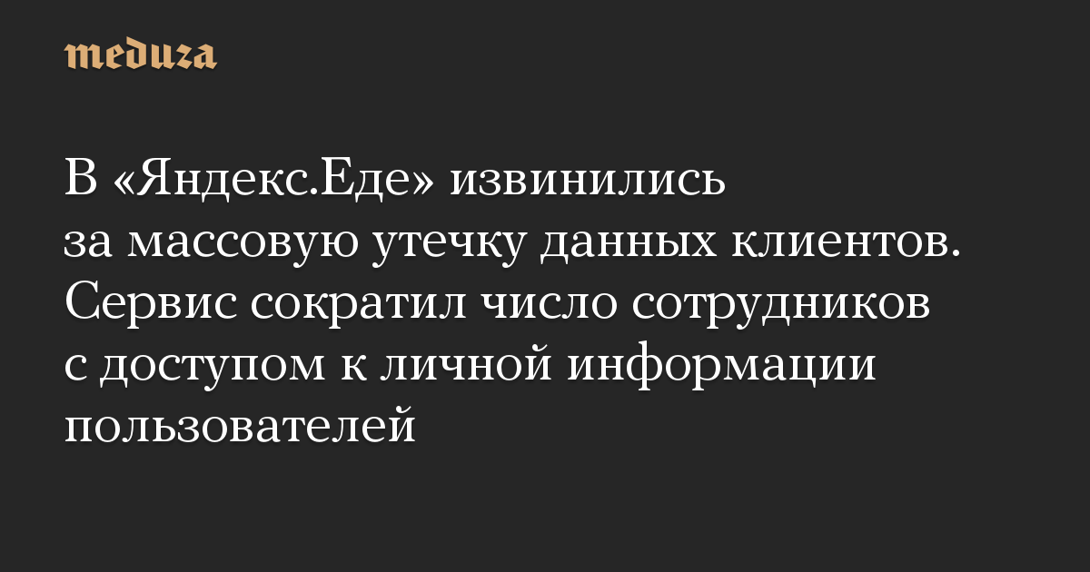 В «Яндекс.Еде» извинились за массовую утечку данных клиентов. Сервис сократил число сотрудников с доступом к личной информации пользователей