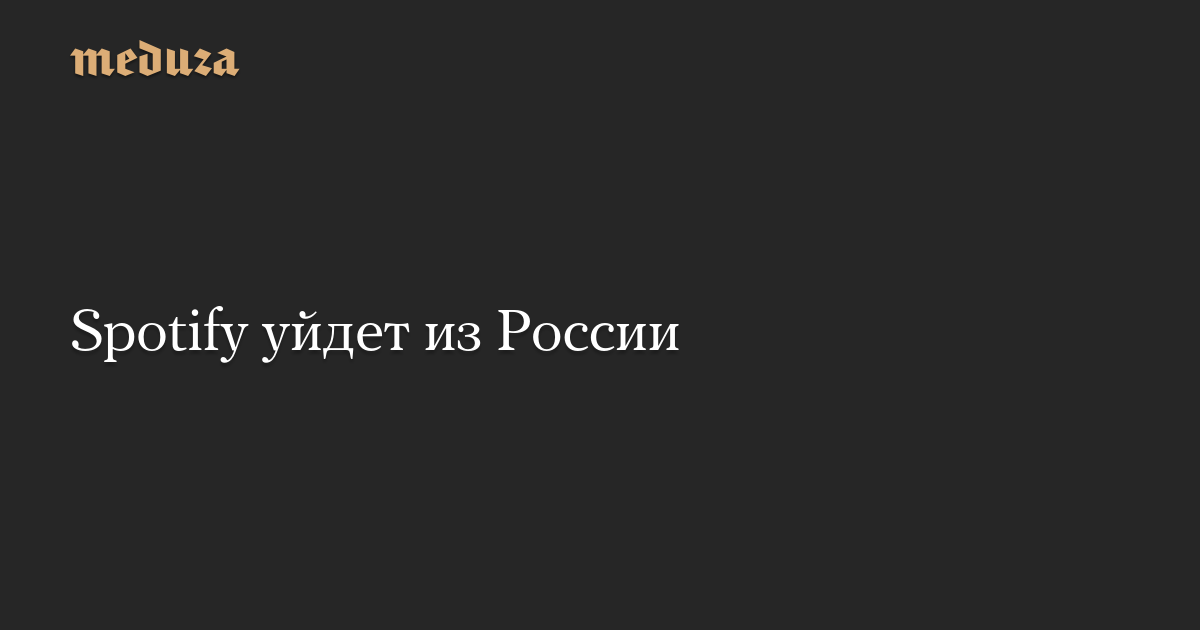 Стриминговый сервис Spotify полностью приостановит работу в России, начиная с апреля, сообщает шведская газета Dagens Nyheter, ссылаясь на заявление компании.