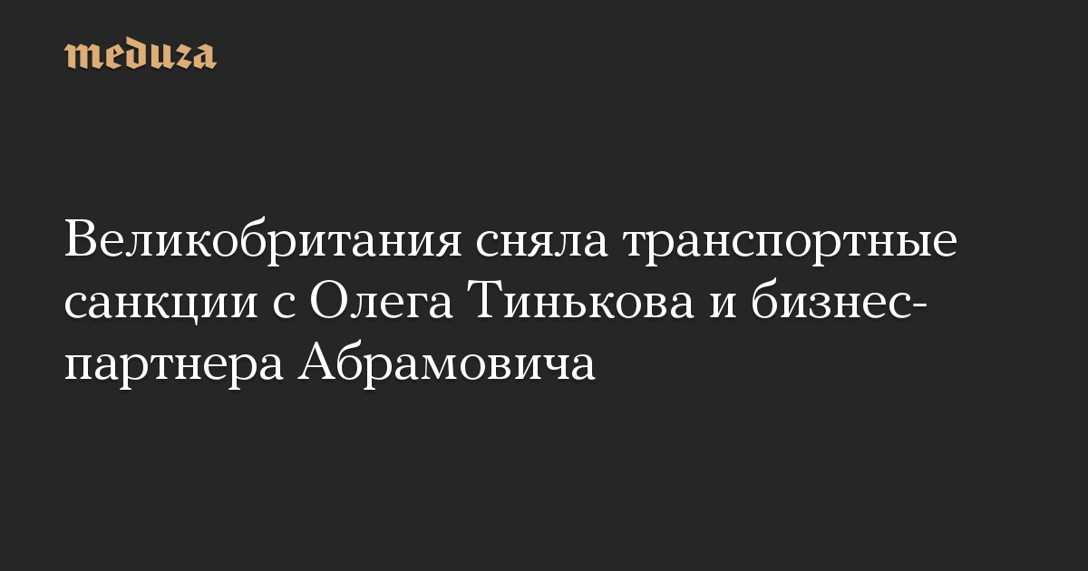 Великобритания сняла транспортные санкции с Олега Тинькова и бизнес-партнера Абрамовича