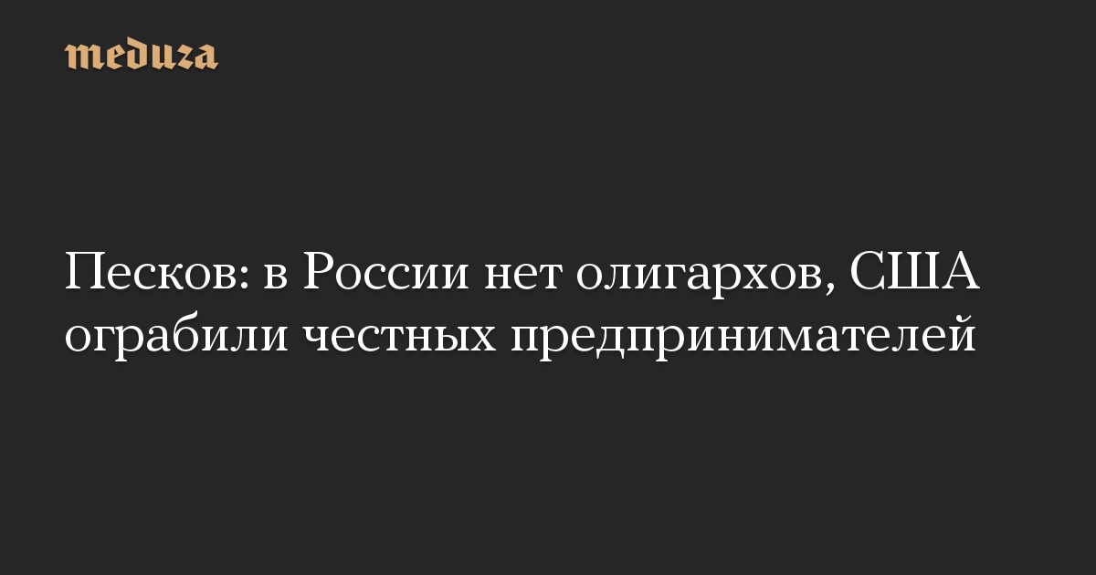 Пресс-секретарь президента России Дмитрий Песков заявил в комментарии РБК, что в России нет олигархов, а США с помощью санкций «ограбили абсолютно честных законных предпринимателей».