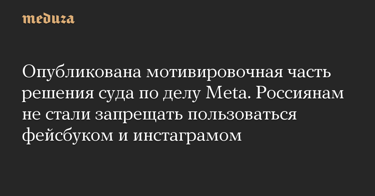 Опубликована мотивировочная часть решения суда по делу Meta. Россиянам не стали запрещать пользоваться фейсбуком и инстаграмом