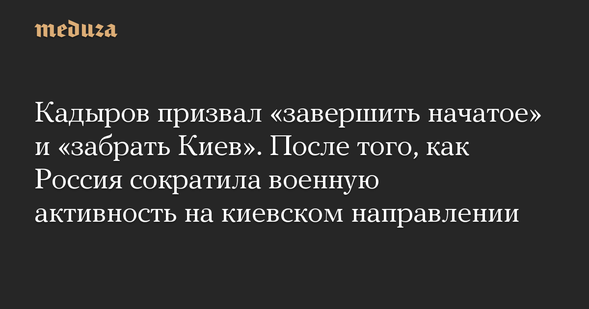Кадыров призвал «завершить начатое» и «забрать Киев». После того, как Россия сократила военную активность на киевском направлении
