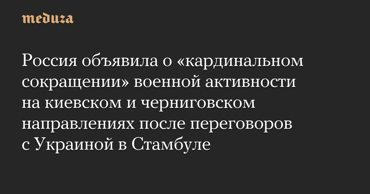 Россия объявила о «кардинальном сокращении» военной активности на киевском и черниговском направлениях после переговоров с Украиной в Стамбуле