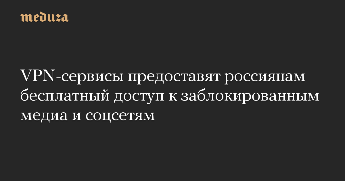 VPN-сервисы предоставят россиянам бесплатный доступ к заблокированным медиа и соцсетям