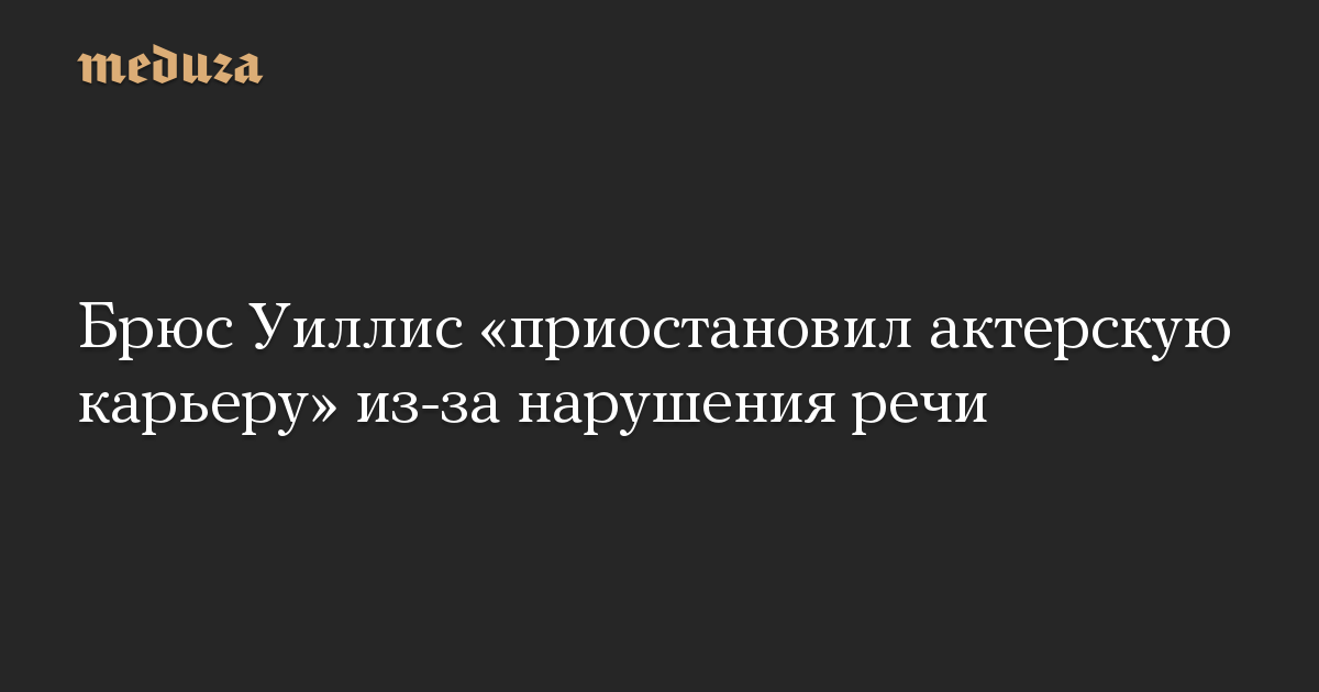 «Мы хотели поделиться тем, что у нашего любимого Брюса возникли некоторые проблемы со здоровьем и недавно ему поставили диагноз „афазия“, которая влияет на его когнитивные способности. Из-за этого, тщательно все обдумав, Брюс решил приостановить карьеру, которая так много для него значила.