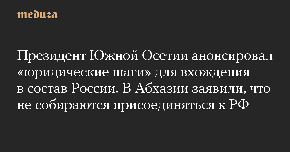 Президент Южной Осетии анонсировал «юридические шаги» для вхождения в состав России. В Абхазии заявили, что не собираются присоединяться к РФ