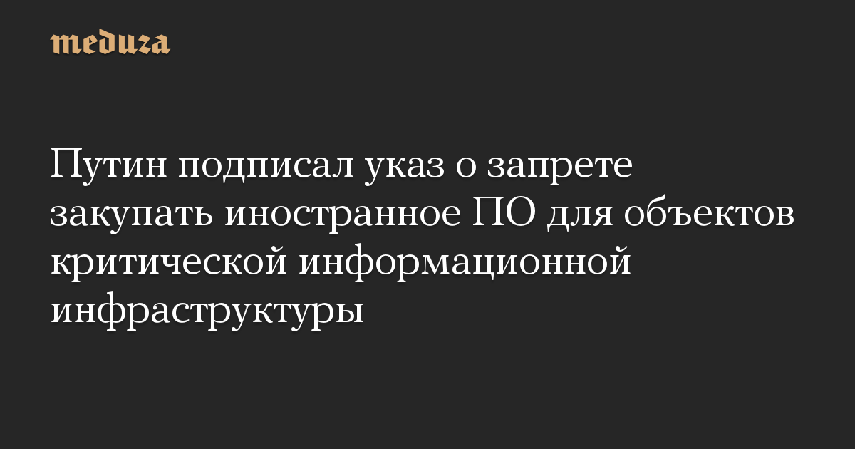 Путин подписал указ о запрете закупать иностранное ПО для объектов критической информационной инфраструктуры
