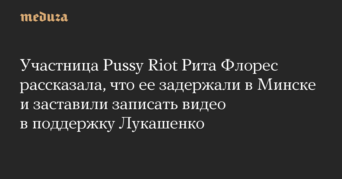 В Минске сотрудники милиции (вероятно, ГУБОПиК МВД) задержали участницу Pussy Riot Риту Флорес и заставили ее записать ролик в поддержку Александра Лукашенко. Об этом сама Флорес рассказала «Медиазоне».