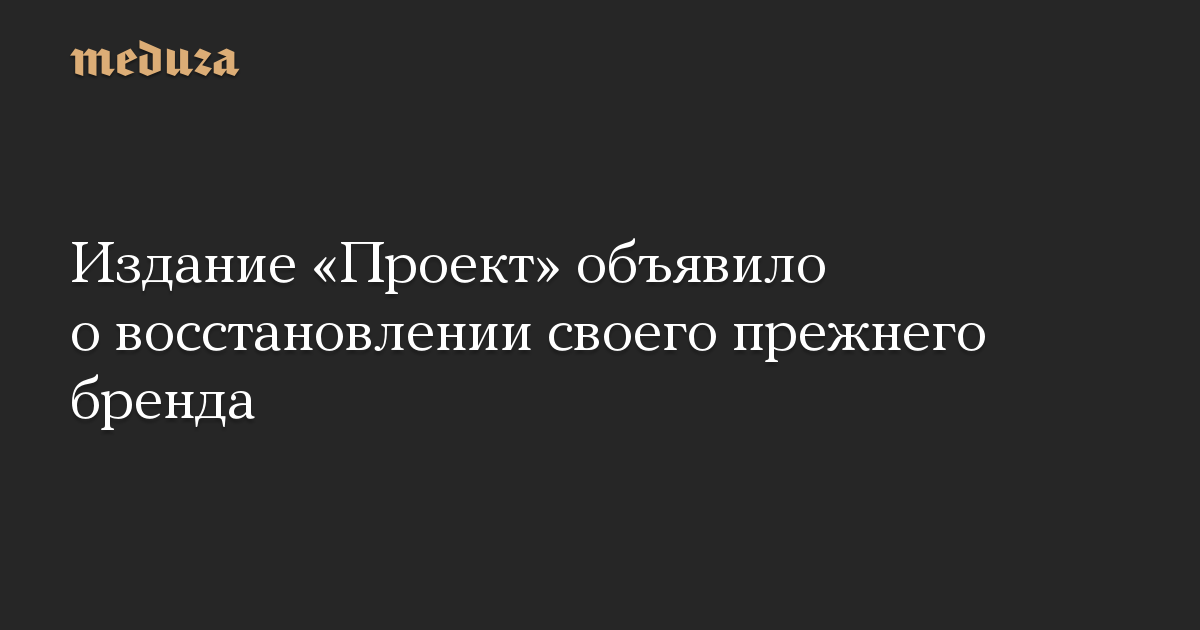 Издание «Проект» объявило о восстановлении своего прежнего бренда