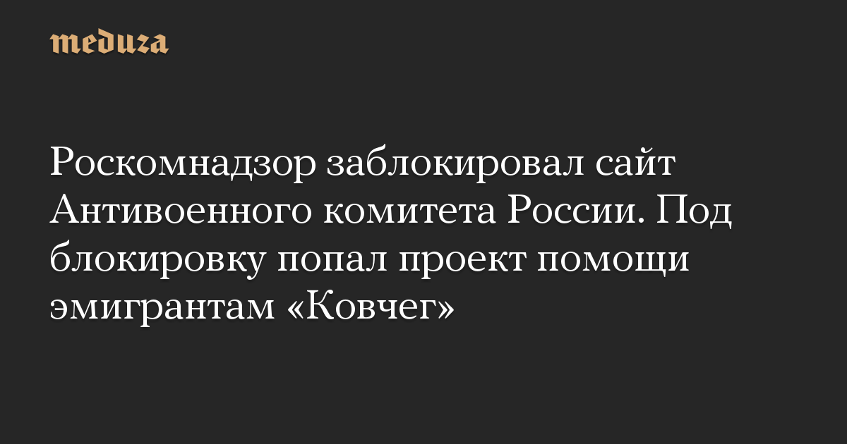 «Наш сайт проекта помощи эмигрантам „Ковчег“ заблокировал Роскомнадзор на территории России по требованию Генеральной прокуратуры. Точнее, весь сайт Антивоенного комитета, где располагалась информация о проекте», — говорится в сообщении проекта.