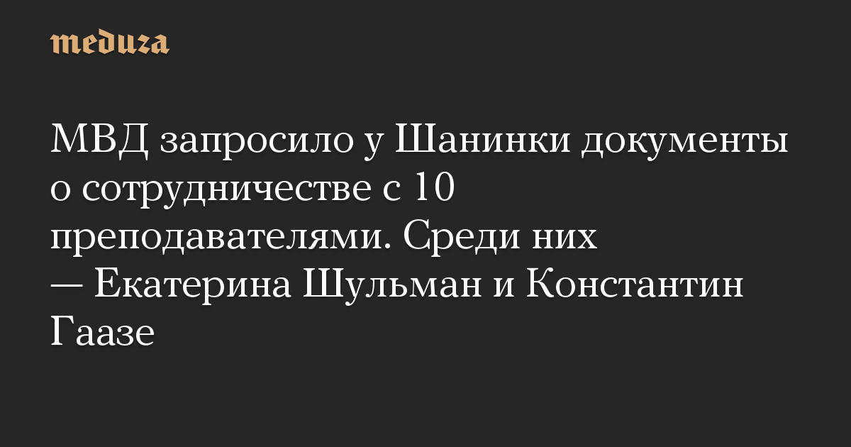 МВД запросило у Московской высшей школы социальных и экономических наук (Шанинки) документы о сотрудничестве с десятью преподавателями, пишет «Коммерсант».