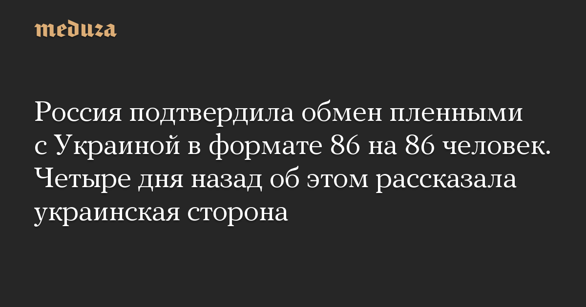 Россия подтвердила обмен пленными с Украиной в формате 86 на 86 человек. Четыре дня назад об этом рассказала украинская сторона
