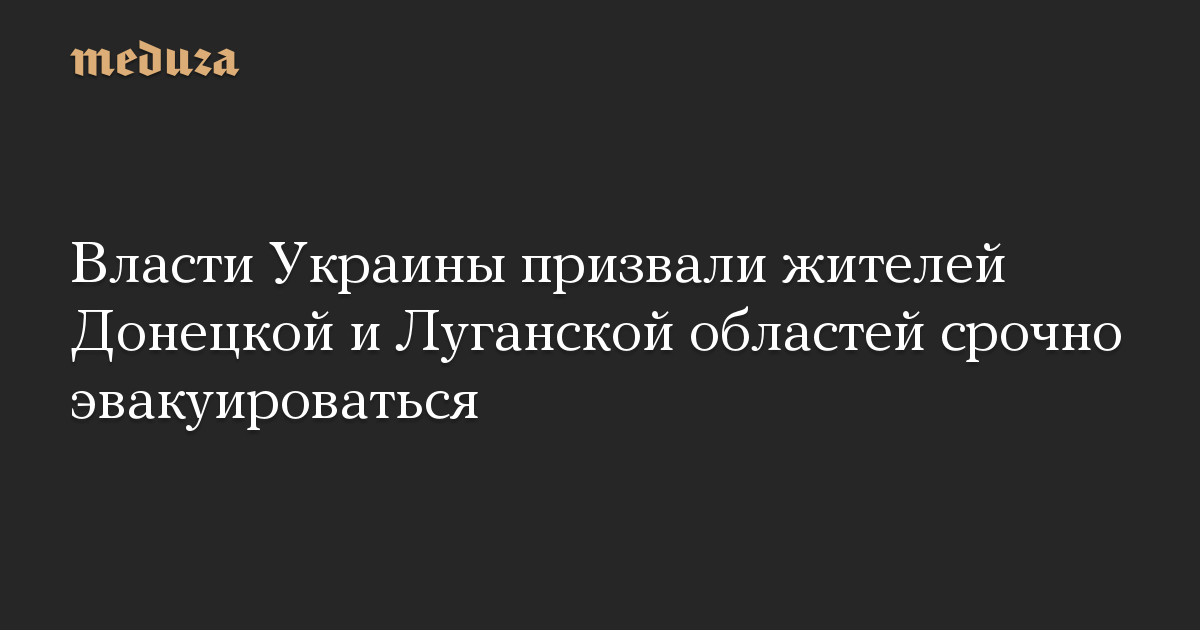 Власти Украины призвали жителей Донецкой и Луганской областей срочно эвакуироваться