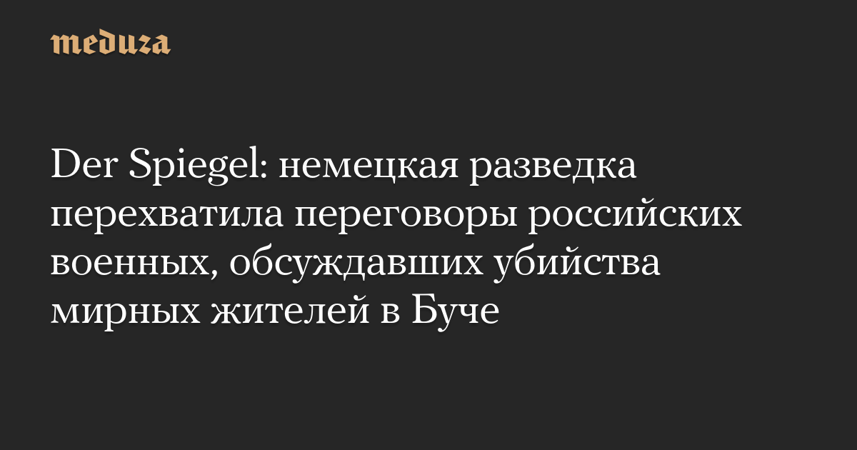 Der Spiegel: немецкая разведка перехватила переговоры российских военных, обсуждавших убийства мирных жителей в Буче