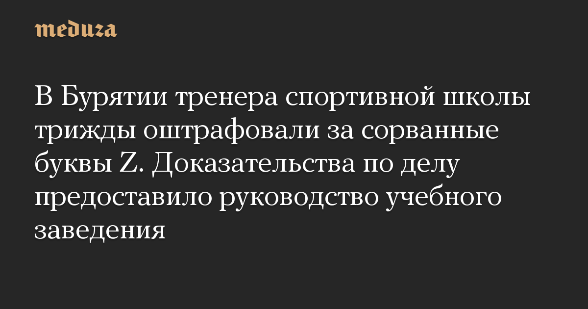 В Бурятии тренера спортивной школы трижды оштрафовали за сорванные буквы Z. Доказательства по делу предоставило руководство учебного заведения